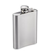 Stainless steel 110ml hip flask with a safe closure. Logo might be engraved on the article's surface.